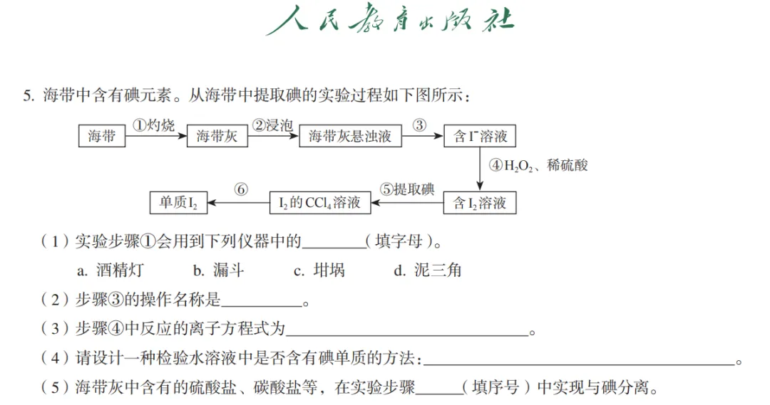 时用到的灼烧装置。其他教材对海带提碘装置也更多是纯文字考察。(试题是苏教版课后题),改成搜坩埚,结果在八年级化学鲁科版找到了仪器图片还对比着蒸发皿。真神奇。