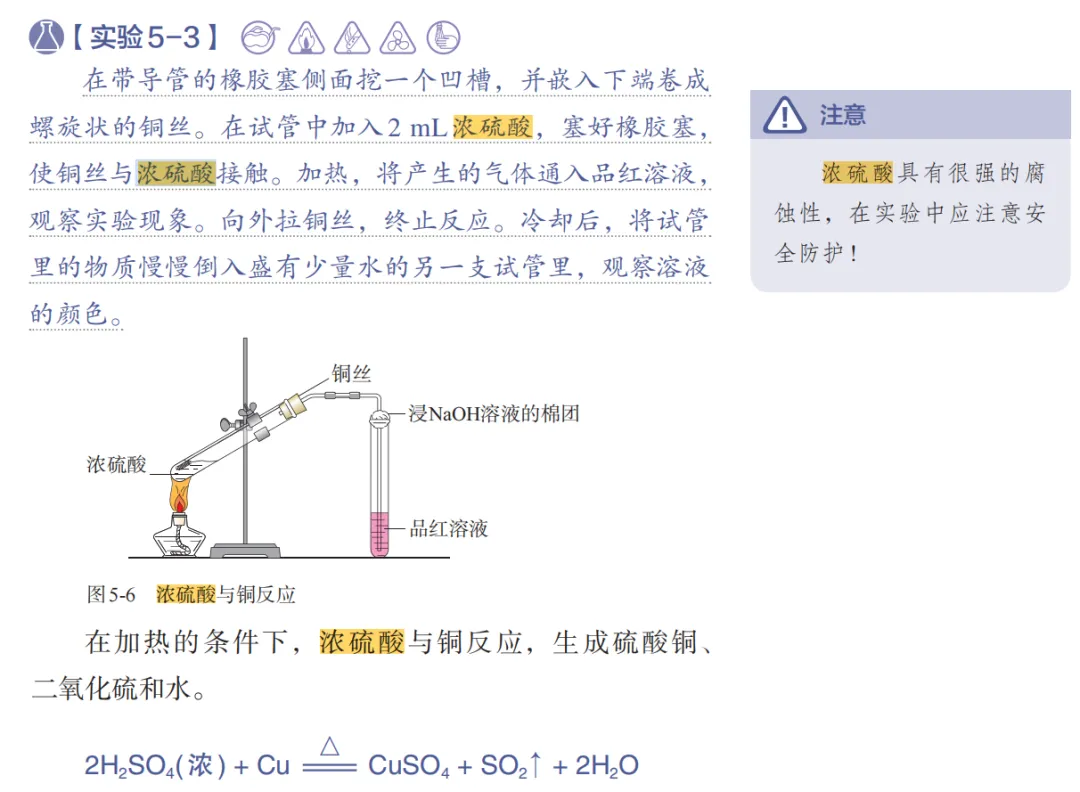 【D铜和浓硫酸反应】部分学生因为B的氨气极易溶于水要防倒吸,开始考虑二氧化硫作为一个也能跟氢氧化钠发生喷泉实验的物质,到底要不要防倒吸。所以我们还是找课本。我记得是人教版原图,因为这里用铜丝属于创新,而鲁科版还是用的粉末。对照教材确实没有防倒吸。所以这题D是正确答案。