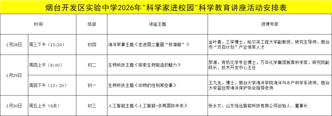【全环境立德树人】烟台开发区实验中学举办2026年“科学家进校园”系列科学教育讲座