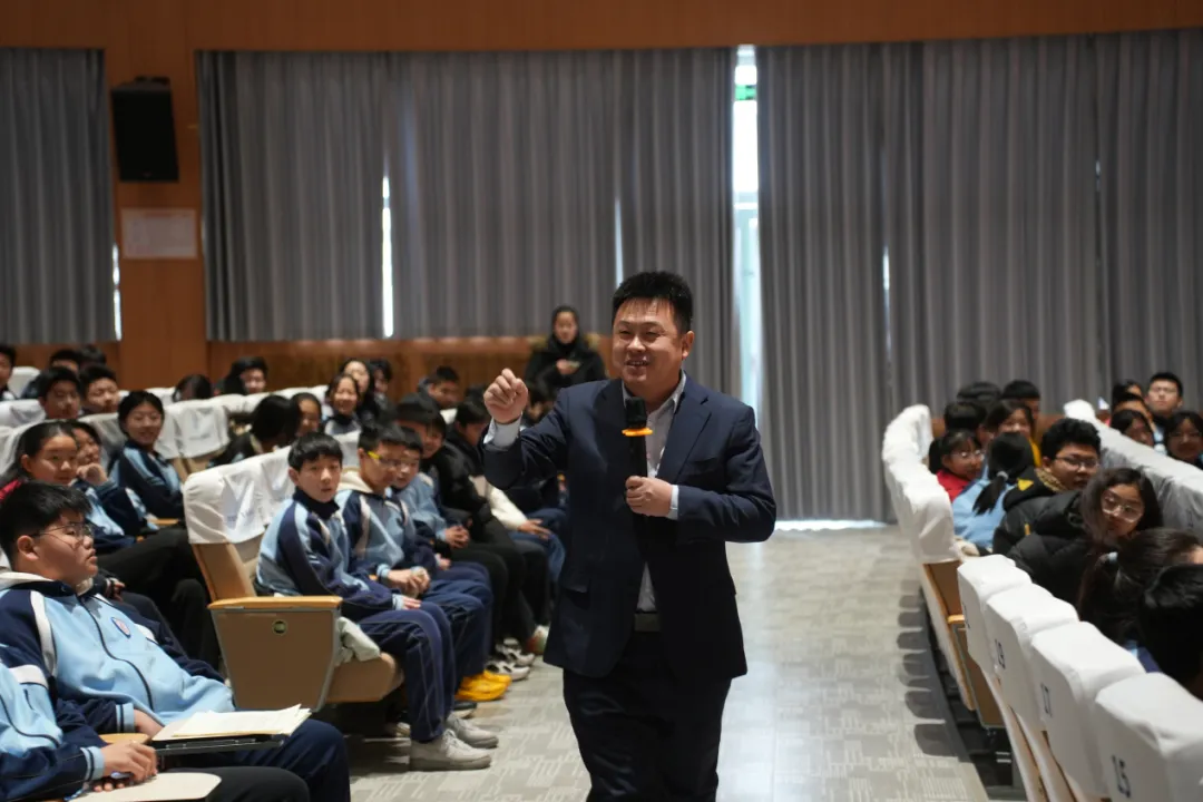 初三级部则着眼于“人工智能”领域,邀请山东恒远智能科技有限公司创始人、董事长张永文博士,带来题为《人工智能-点亮国防未来》的前沿讲座。张老师结合自身在工业互联网与人工智能应用领域的深厚实践,为同学们描绘了智能科技赋能未来的广阔图景。