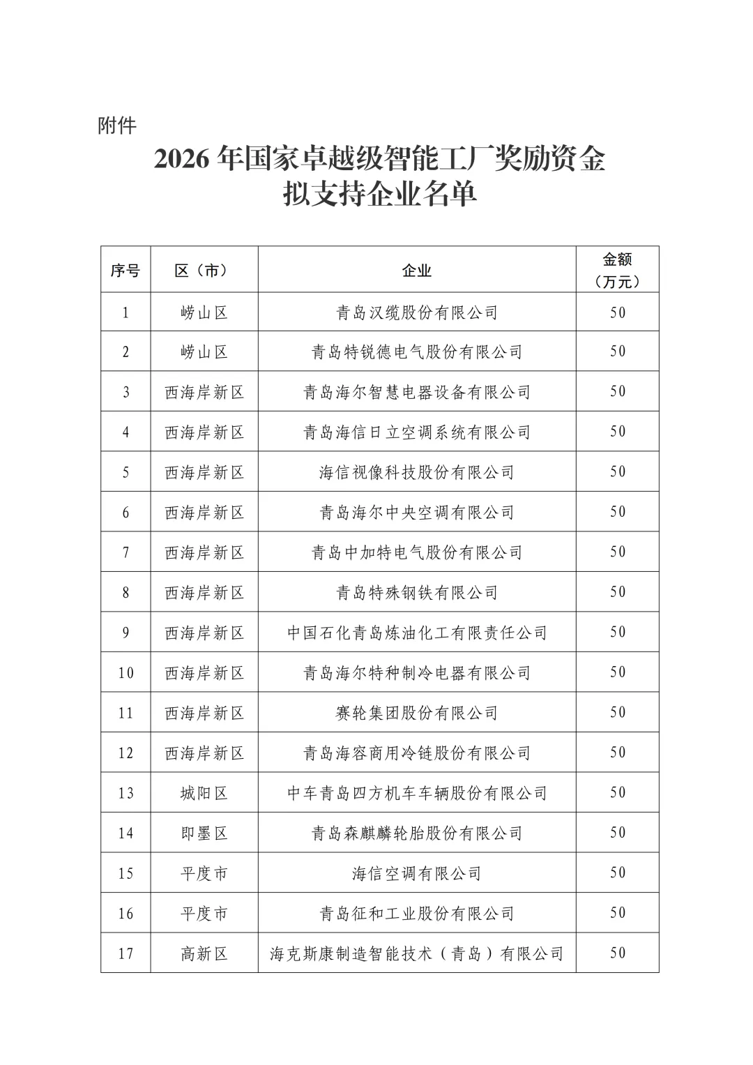 当前位置:首页>青岛>青岛:关于2026年国家卓越级智能工厂奖励资金拟支持企业名单的公示(附名单)