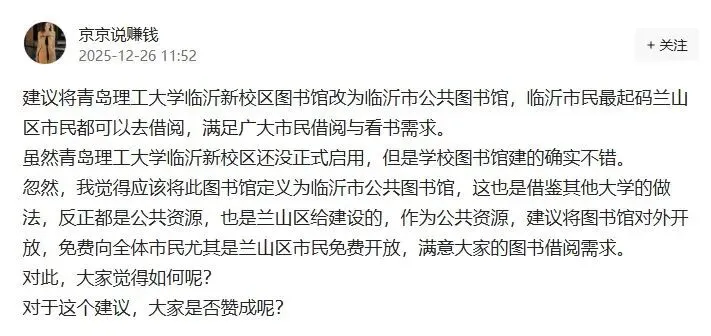【建议】关于青岛理工大学临沂新校区图书馆对外开放的建议