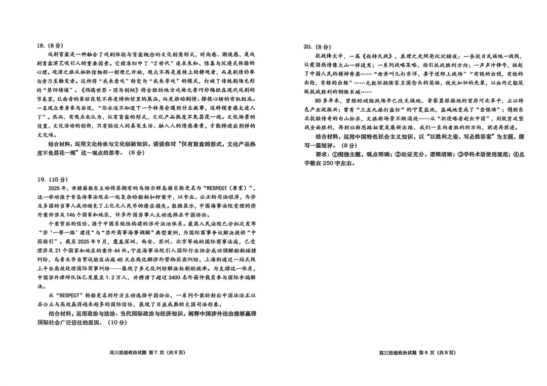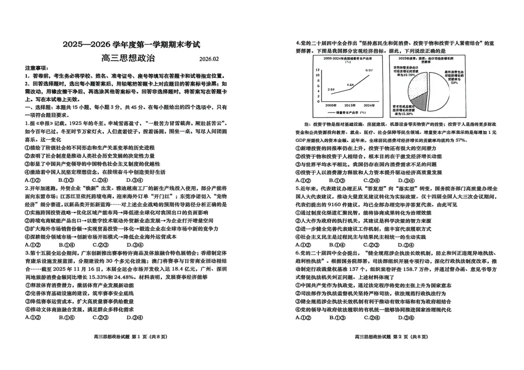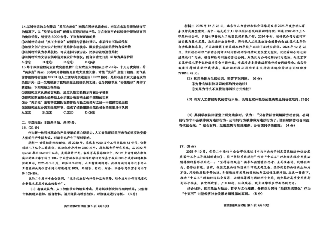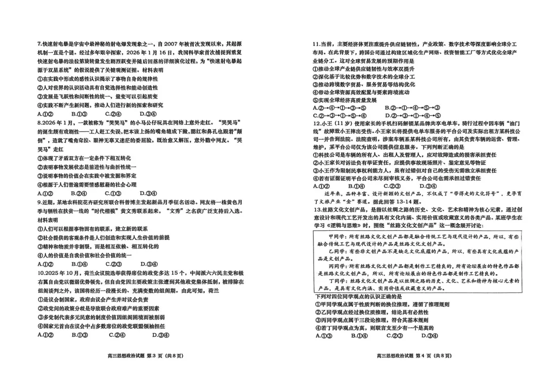 高三思想政治答案2026.02