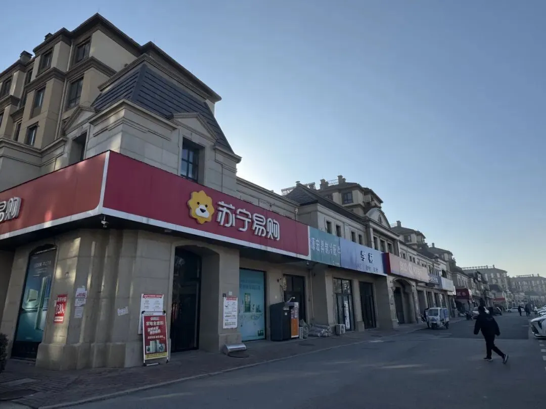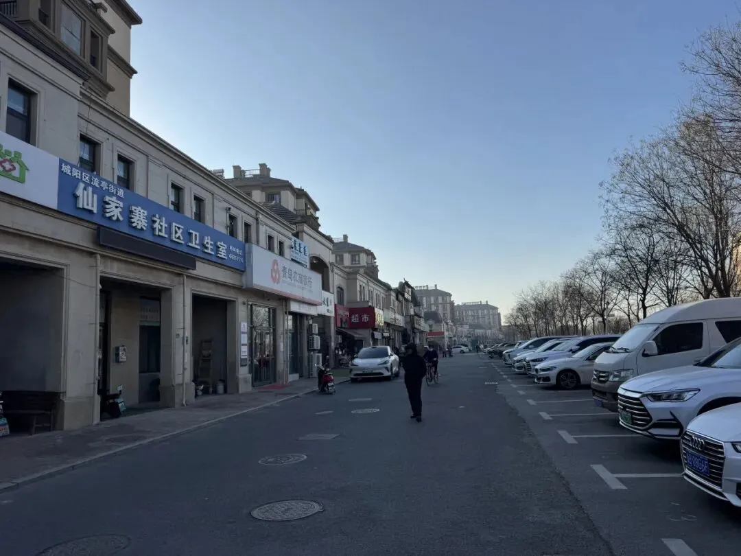 仙家寨馨苑建设的现代漂亮。沿街看到了仙家寨社区卫生室、苏宁易购以及银行、超市等。