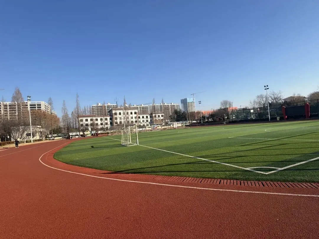 进入公园就是一座大体育场,美丽的塑胶跑道,绿油油的草坪。可以在这里跑步,踢足球,或者是慢走。