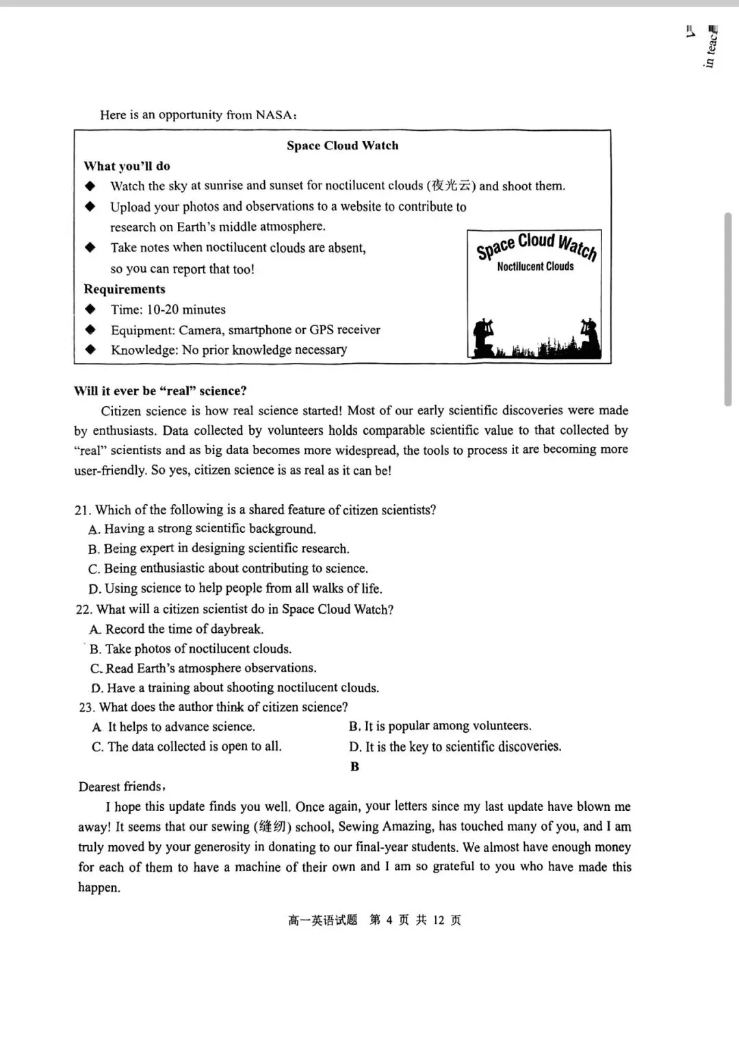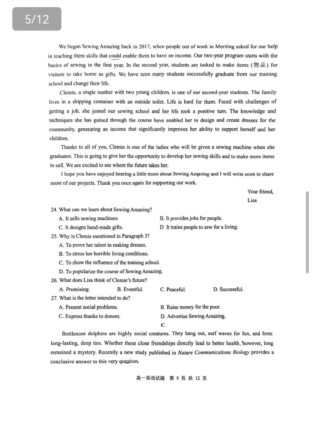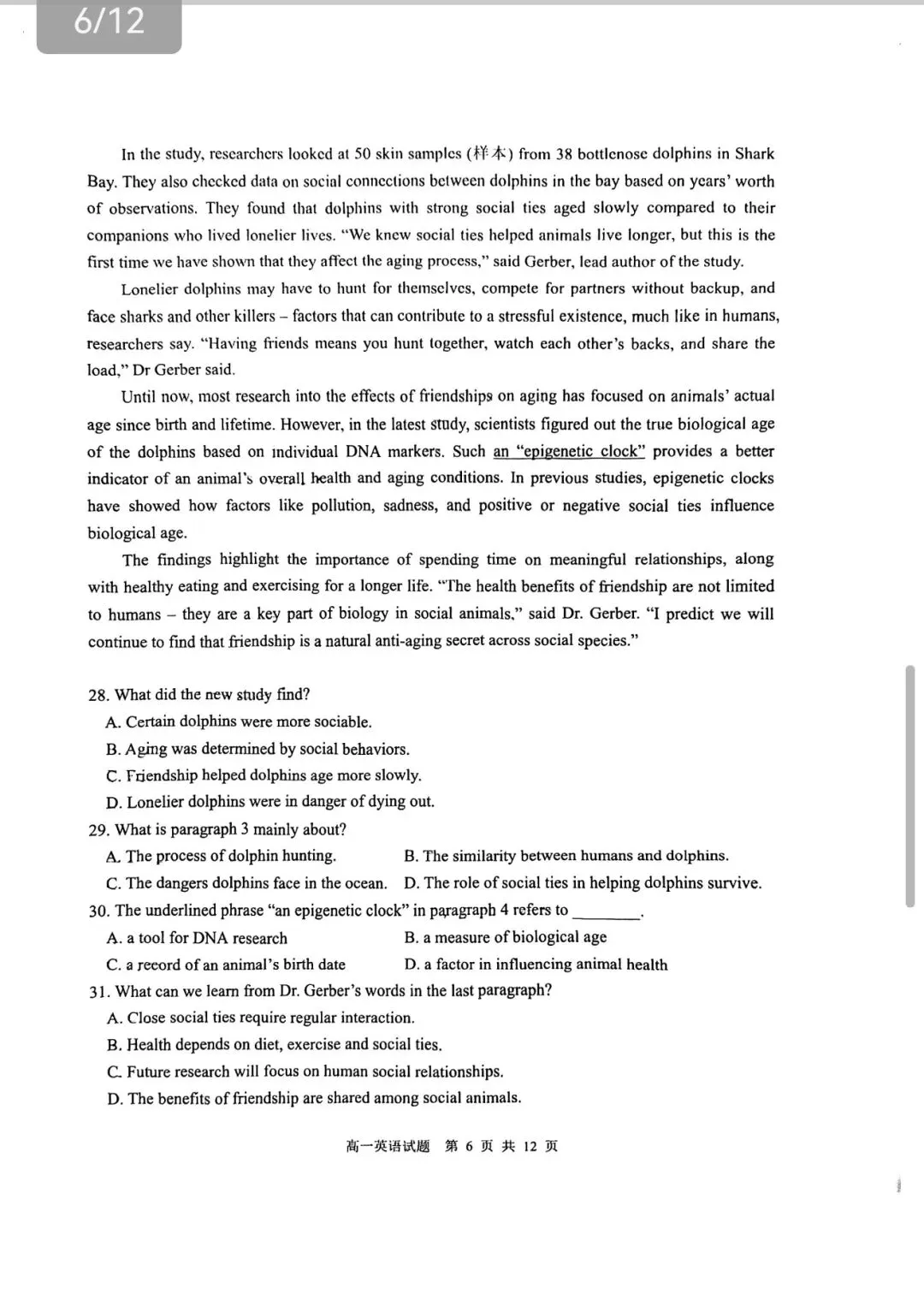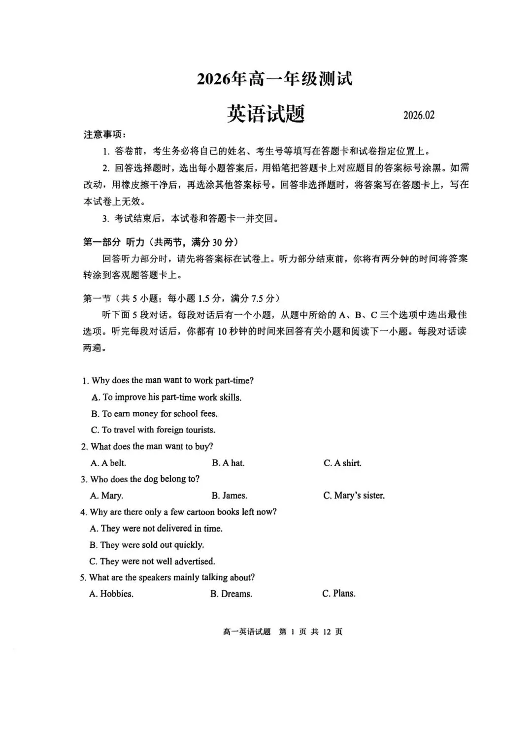 >2025-2026青岛市高一上期末统考英语试题