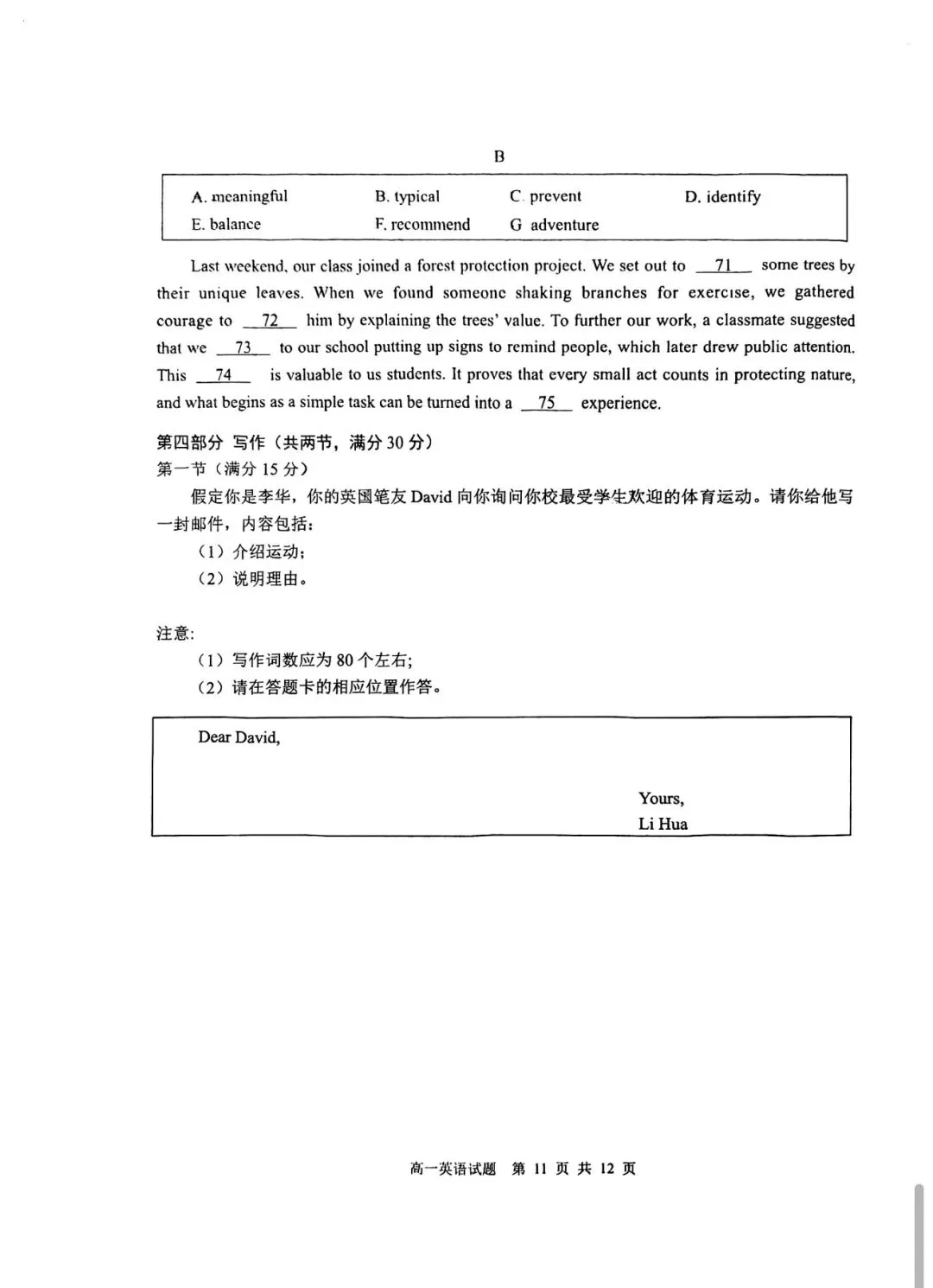 2025-2026青岛市高一上期末统考英语试题