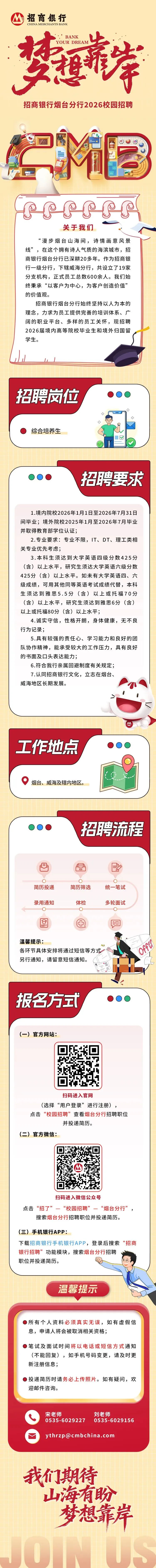 >“梦想靠岸”招商银行烟台分行2026春季校园招聘