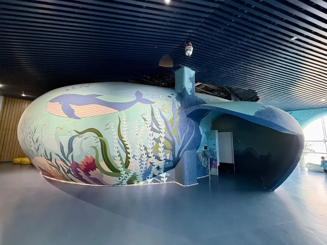 二楼还有两个必打卡的项目:海螺影院和VR太空之旅。海螺影院是环形影厅,外墙手绘着海底世界,坐在里面,仿佛穿越回百年前的青岛,从小渔村到国际化都市的蜕变,看得人热血沸腾。VR太空之旅更有意思,戴上设备就能“遨游太空”,体验从海底7000米的蛟龙号,到40000米天宫空间站的奇妙旅程,想去玩的一定要掐好时间。