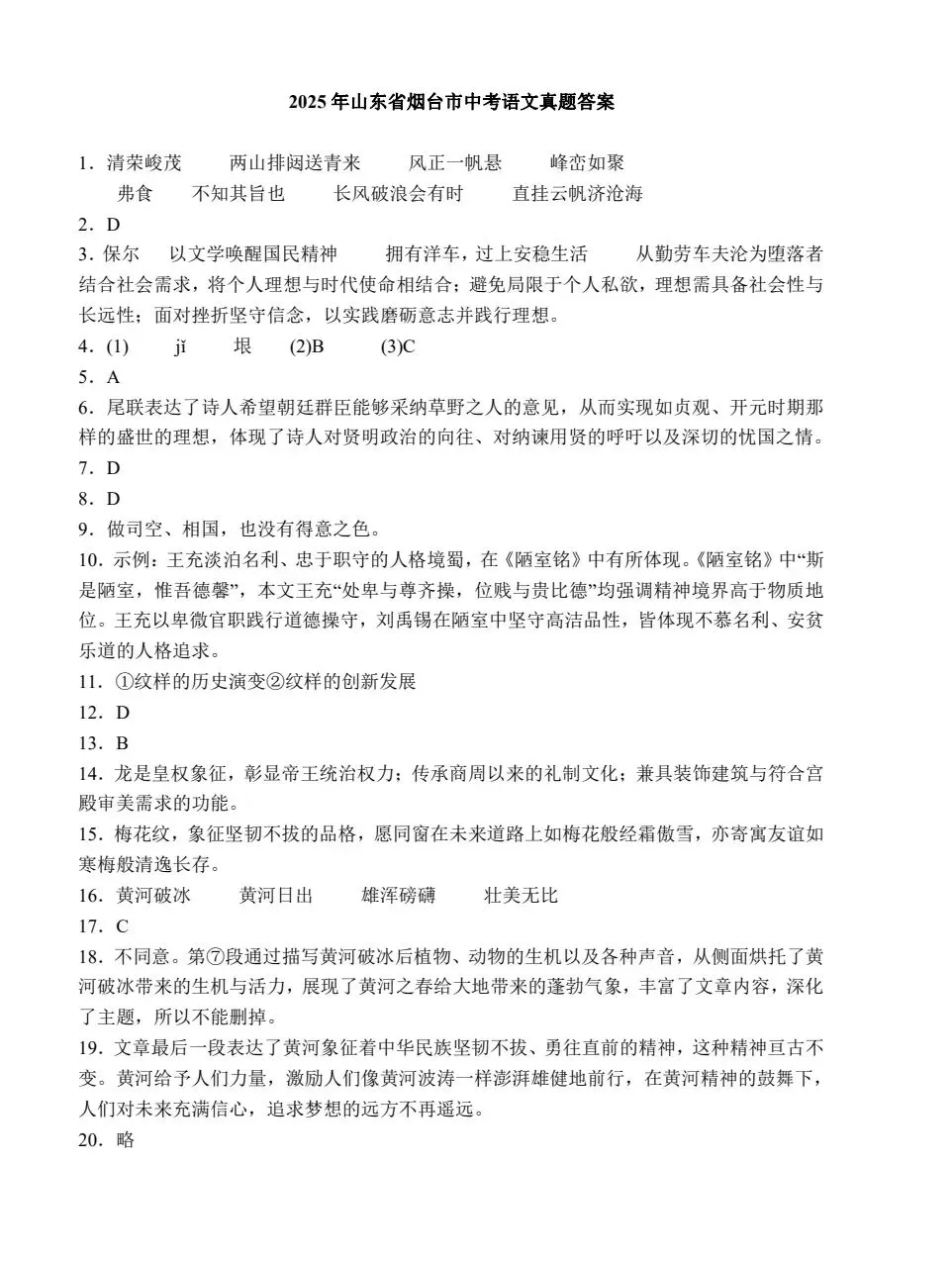 关注我,阅读更多内容。2025年山东省烟台市中考语文真题