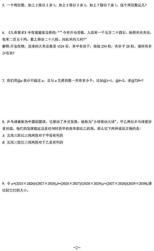 >2026年2月青岛二中山海卓越杯数学竞赛六年级试题