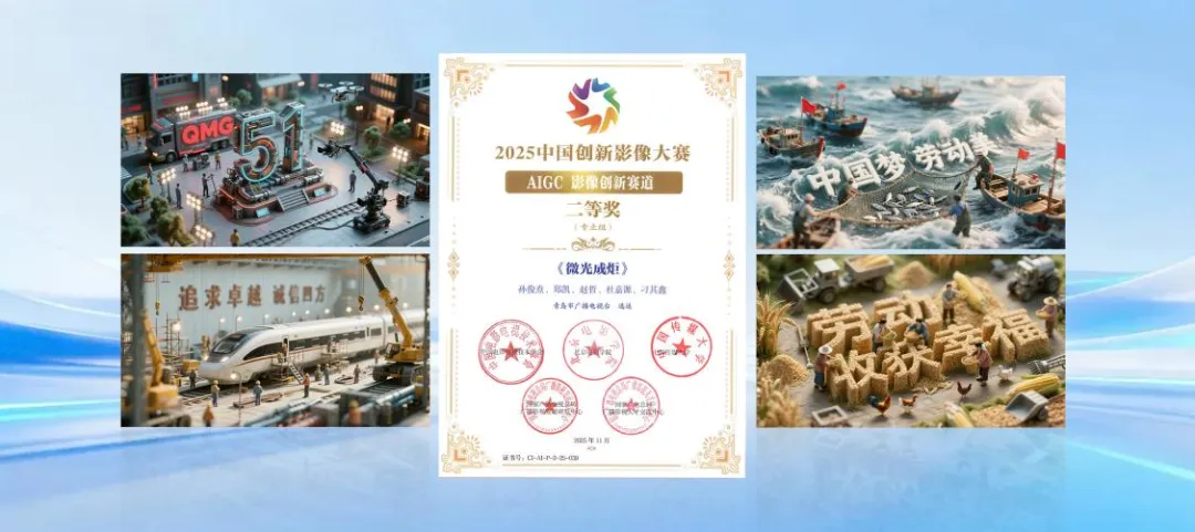 在国家广电总局、中国电影电视技术学会及中国传媒大学等单位联合举办的中国创新影像大赛上,青岛广电全媒体技术中心新锐智能工作室选送的AIGC作品《微光成炬》,凭借独特创意荣获二等奖。该作品以微缩视角为切入点,巧妙运用AIGC技术还原各行各业劳动者的工作场景,深刻诠释了“平凡铸就伟大”的时代内涵。