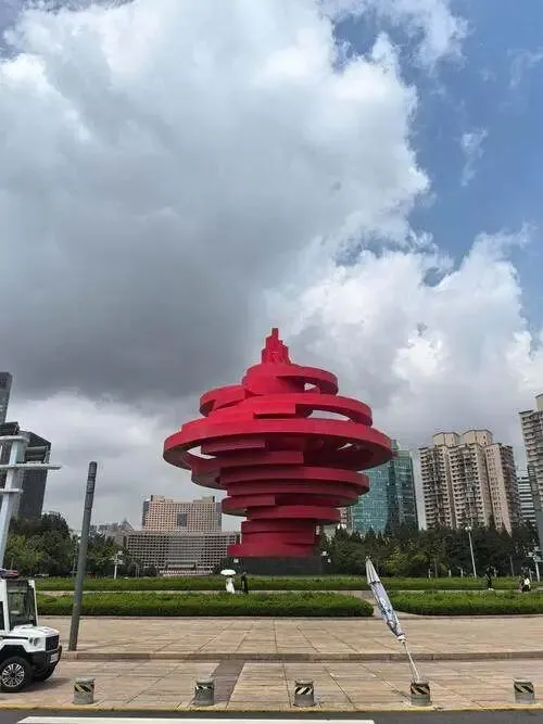 五四广场是新区门面,草干净红雕塑亮眼,夜里灯光配海风很舒坦,白天日晒和风噪一般。