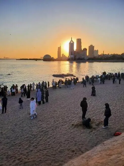 黄岛那边现在叫西海岸新区,金沙滩开阔,海浪更猛,开车过去要跨海大桥,地铁加公交时间会拖长。