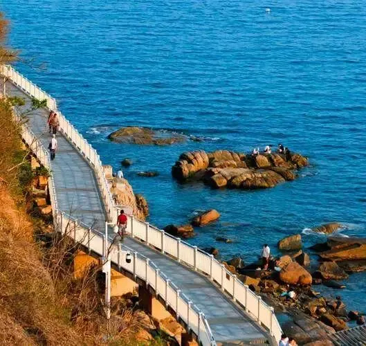 五四广场到奥帆中心就走海边栈道,风小时时间会飞快,风大时耳朵会麻,秋冬戴帽子保命。
