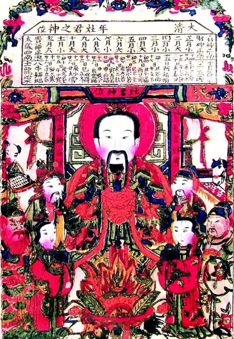 德占青岛之前的老青岛人,大多过着“农渔并举”的日子,二十四节气便是他们日常劳作的行动纲领。因此,每年腊月二十三小年之前,家家户户都会请一张印着来年节气表的灶王爷画像,青岛人俗称其为“灶码”。这灶码分为三部分:最上方是灶王爷骑马上天庭的条幅,唤作“灶码头”,小年傍晚辞灶时,要与香火、冥币一同焚烧,寓意恭送灶王爷上天庭,向玉皇大帝禀报人间善恶。