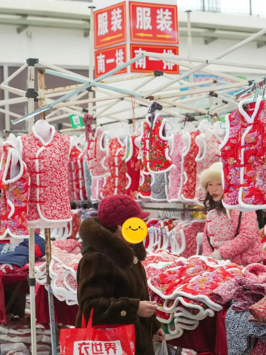 过新年穿新衣,越穿越欢喜。在大集上,卖衣服的摊位前也挤满了不少顾客,每个人挑选自己喜欢的新衣服,尤其是带有红色、看着喜庆的外套最受欢迎!