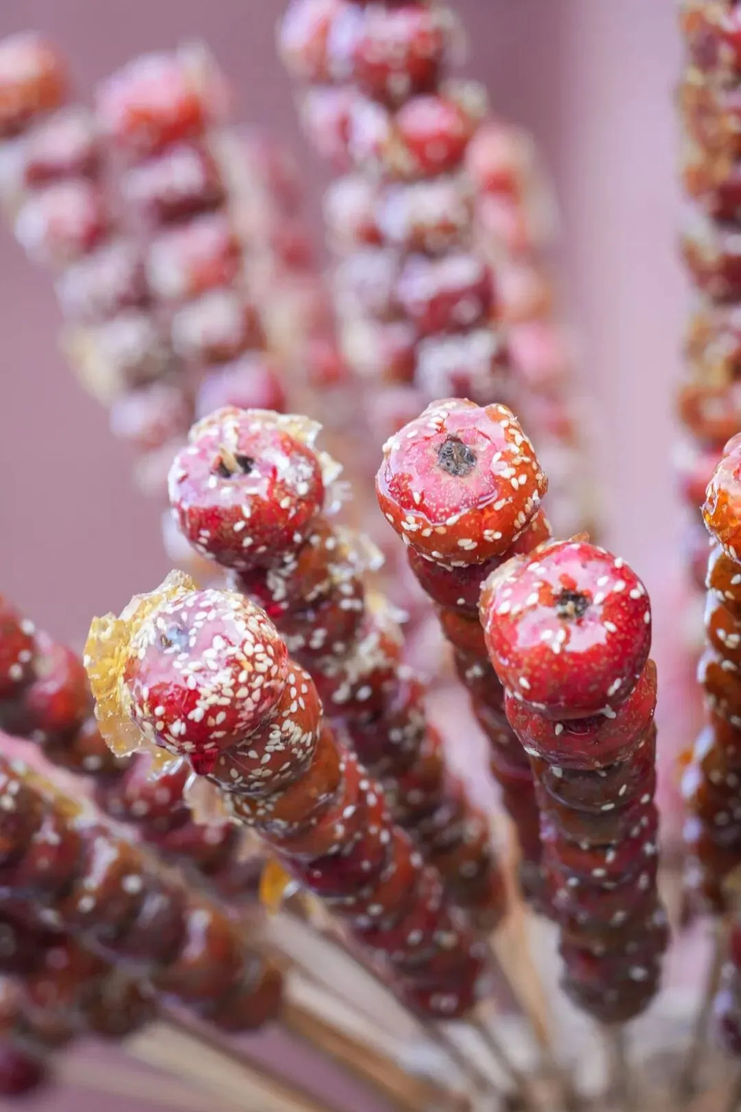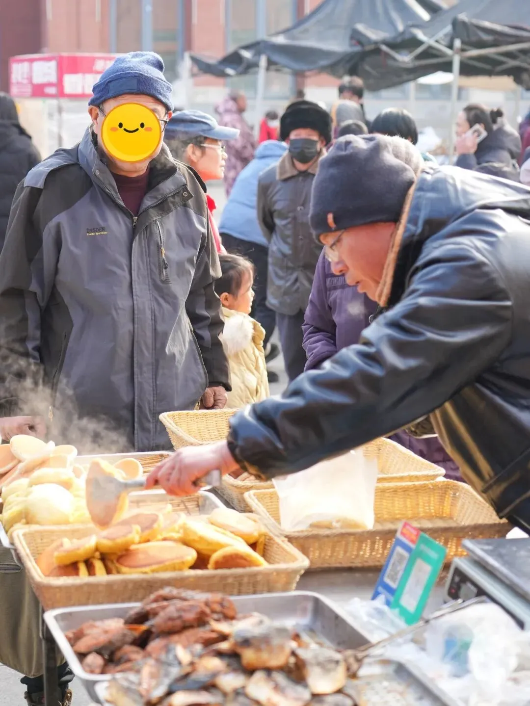 大集往往还网罗了各式美食,外脆里韧的炸面鱼、份量扎实的羊汤、外酥内糯的烟台焖子、香气扑鼻的大饼……逛累了,选些中意的垫垫饥,再来上一根酸酸甜甜的冰糖葫芦,好吃还解腻~