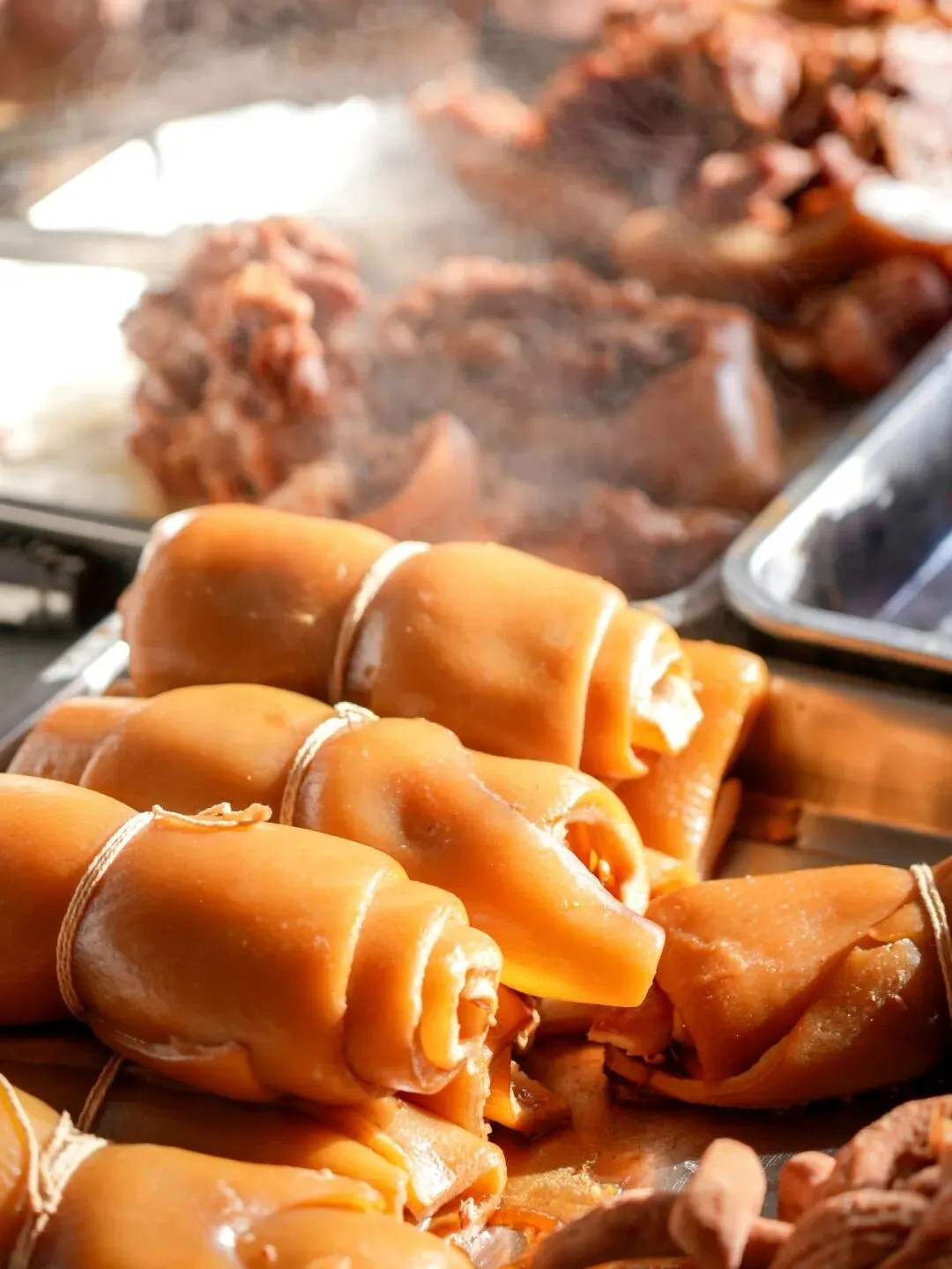 各种卤味熟食,也是过年必不可少的美味。刚出锅的熟食色泽诱人,一出场便成为了顾客眼中的“香饽饽”,迫不及待称上几斤带回家。