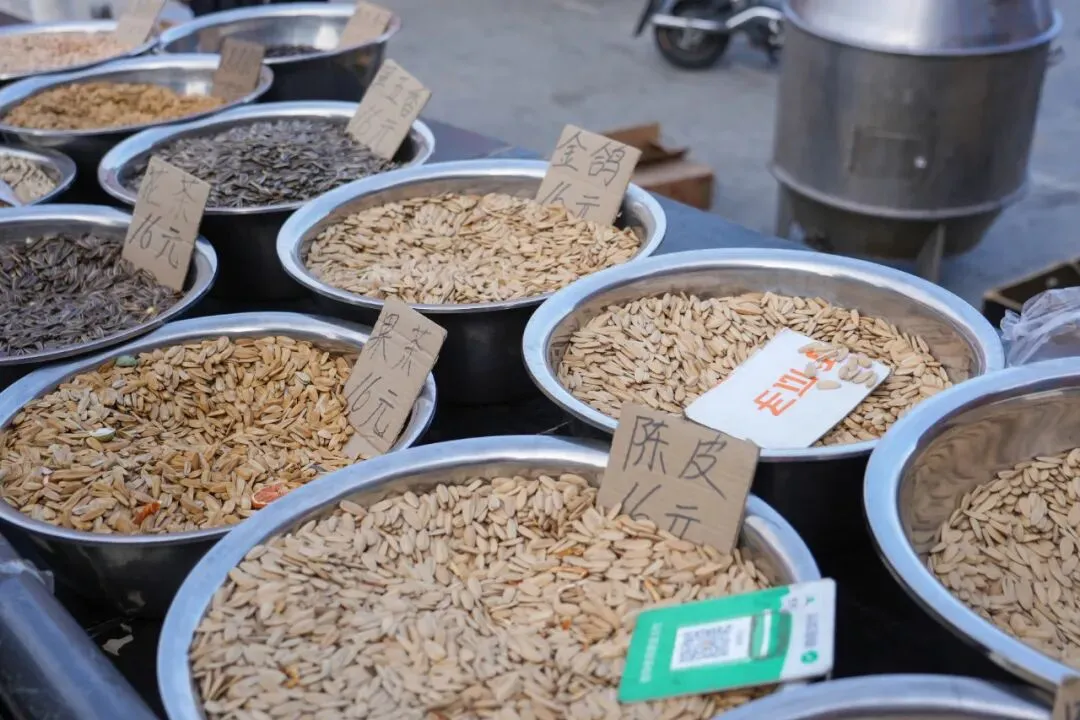 “来来来!瓜子看看!原味、五香、焦糖……什么口味都有!随意试吃!”