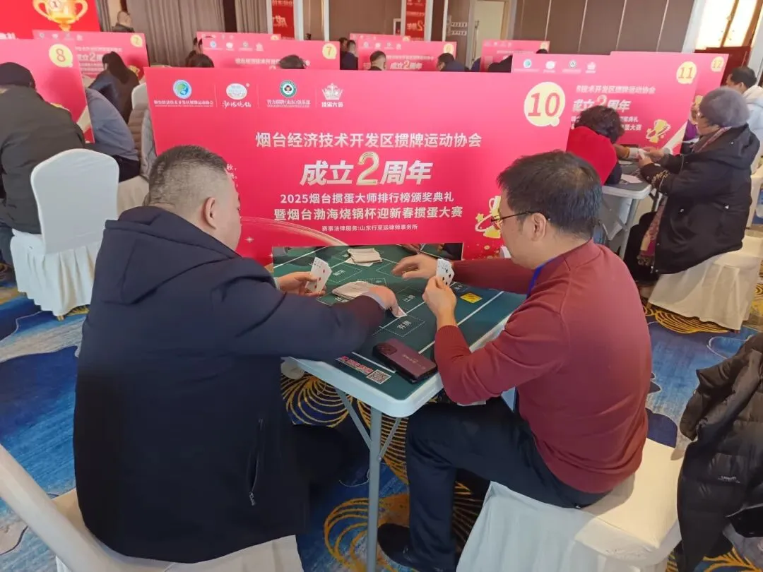 时序更替,华章日新;两载耕耘,聚力前行。1月25日(星期日),烟台经济技术开发区掼牌运动协会成立二周年庆典、2025烟台掼蛋大师排行榜颁奖典礼暨烟台渤海烧锅杯迎新春掼蛋大赛,在枕海酒店温情启幕、圆满落幕。来自全市的掼蛋爱好者齐聚一堂,以牌为媒、以赛会友,在智力竞技的碰撞中回望协会两载荣光,在欢声笑语中共迎新春,用一场兼具专业性与氛围感的盛宴,书写烟台掼牌运动的崭新篇章。