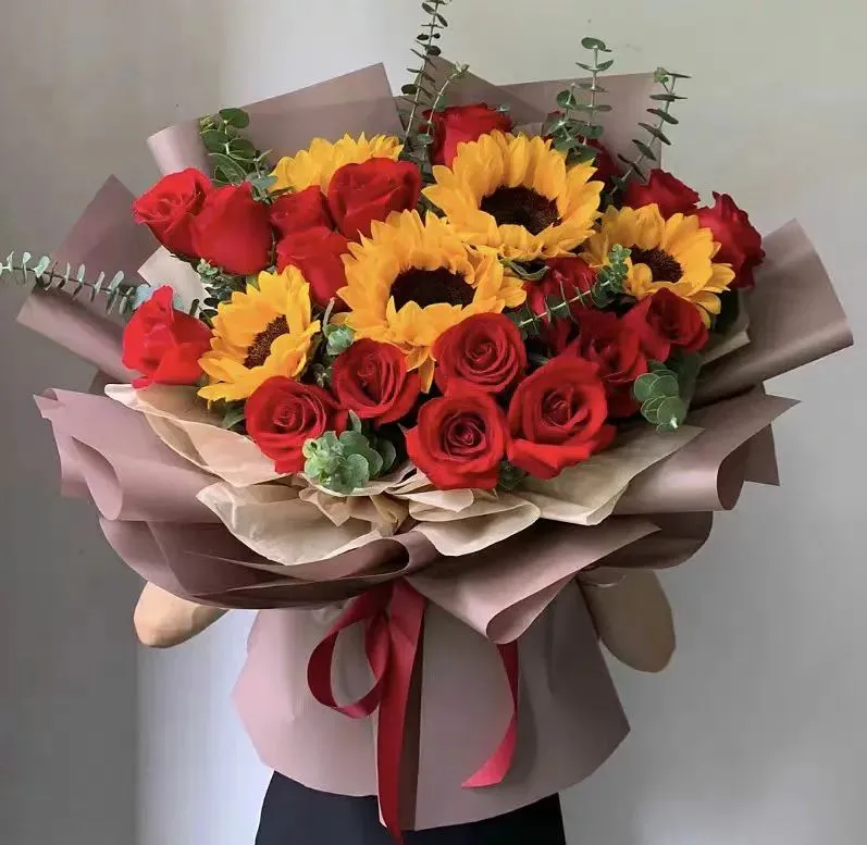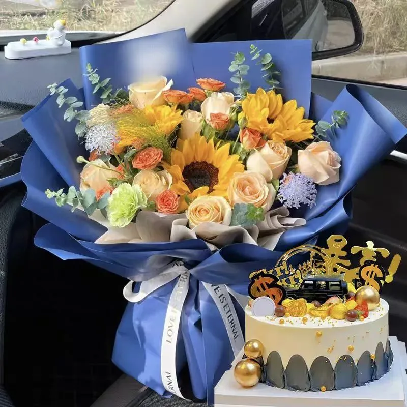 还有一位年轻人,他想要在朋友的生日聚会上给朋友一个惊喜。他来到我们店里,希望我们能为他设计一个独特的开业花篮(这里实际是生日花束,根据语境调整为花束更合适),因为他的朋友即将开启人生新的旅程。我们的花艺师了解了他的想法后,选择了一些充满活力和希望的花材,如向日葵、扶郎花等,搭配上一些绿色的枝叶,制作出了一个充满阳光和正能量的花束。当他在生日聚会上将花束送给朋友时,朋友非常惊喜,脸上洋溢着幸福的笑容。