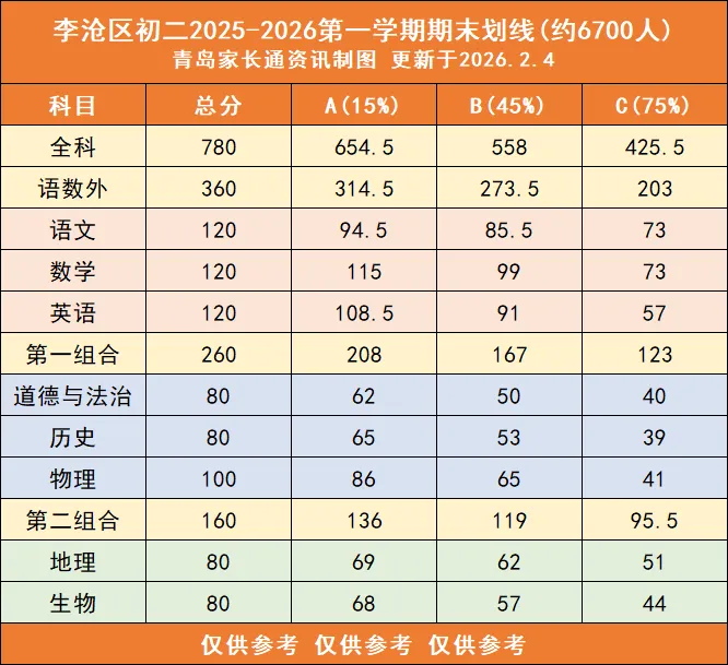 青岛中考满分360分(语数英),想要进入优质高中除去各校录取线外。高中还要考察第一二组合成绩,通常优质高中需要满足B+C的等级:
