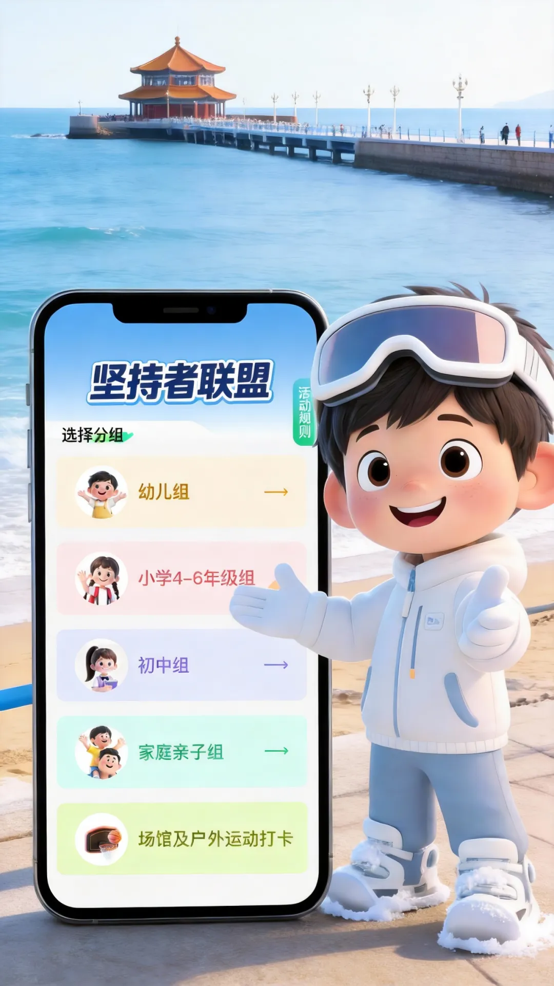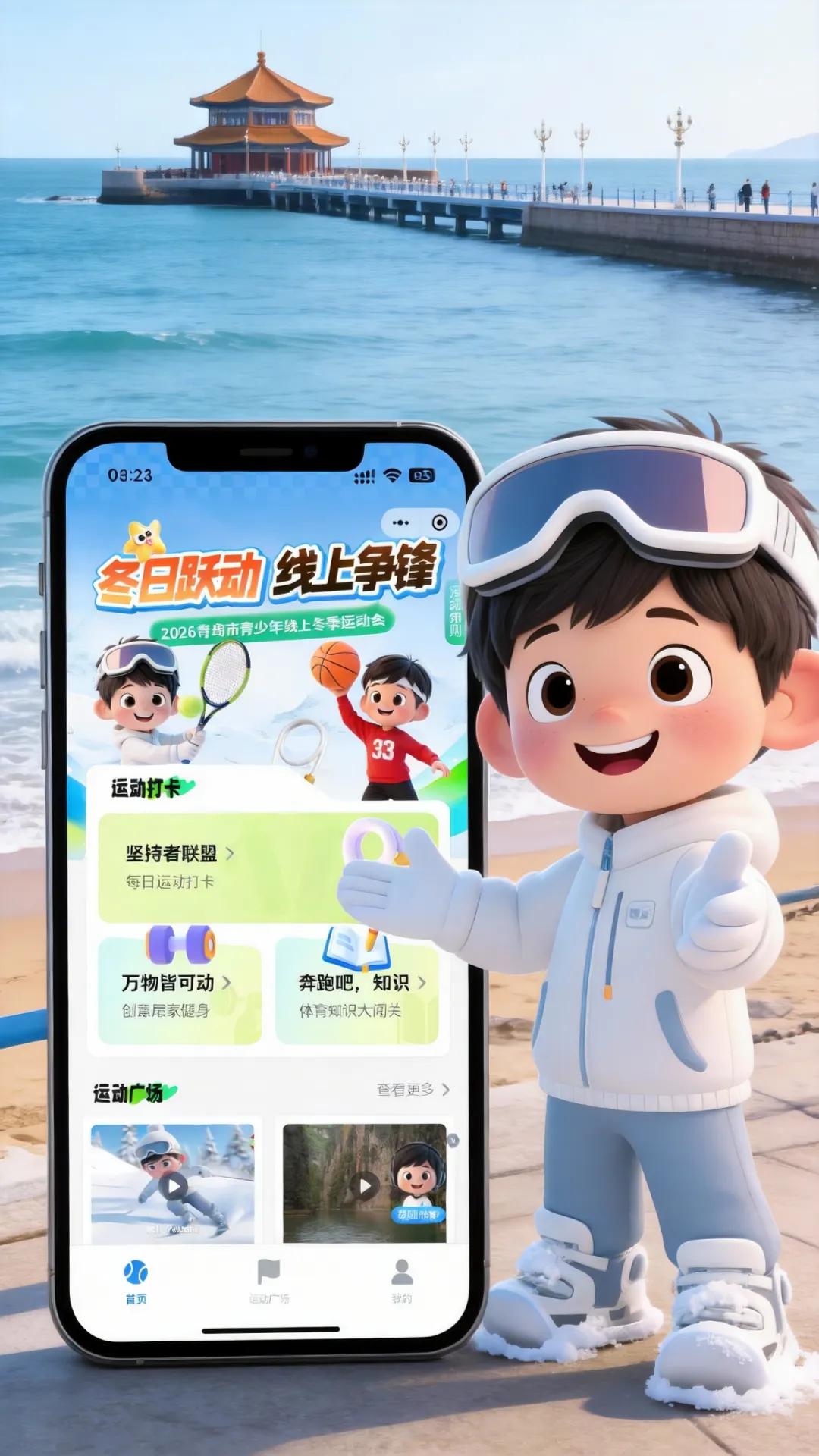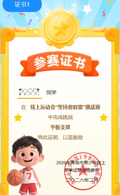 岛城青少年积极参与线上赛项,有机会通过运动打卡、创意挑战、知识问答三种方式获得积分,连续打卡还可获得阶梯积分奖励,累计获得的积分可解锁2026年青岛市青少年线上冬季运动会数字人“冬冬”的更多形象并兑换丰富奖励,完成挑战可获得组委会颁发的电子参赛证书,累计打卡或积分达标者可获得青岛市体育局颁发的纸质完赛证书。