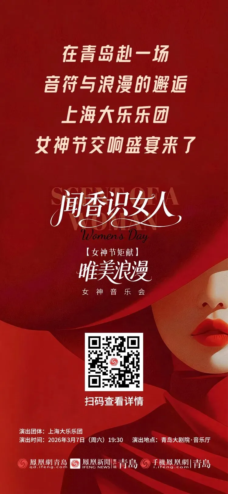 当玫瑰的芬芳遇见琴弦的震颤,每一首经典都是对生命的礼赞。《闻香识女人》女神音乐会,是上海大乐乐团献给当代女性的情书。在这里,音乐不仅是听觉的享受,更是心灵的共振;香氛不仅是气味的艺术,更是情感的载体。3月7日,让我们相聚青岛大剧院,在香氛与音符的交织中,重新定义“美”的维度,见证女性力量的永恒绽放。