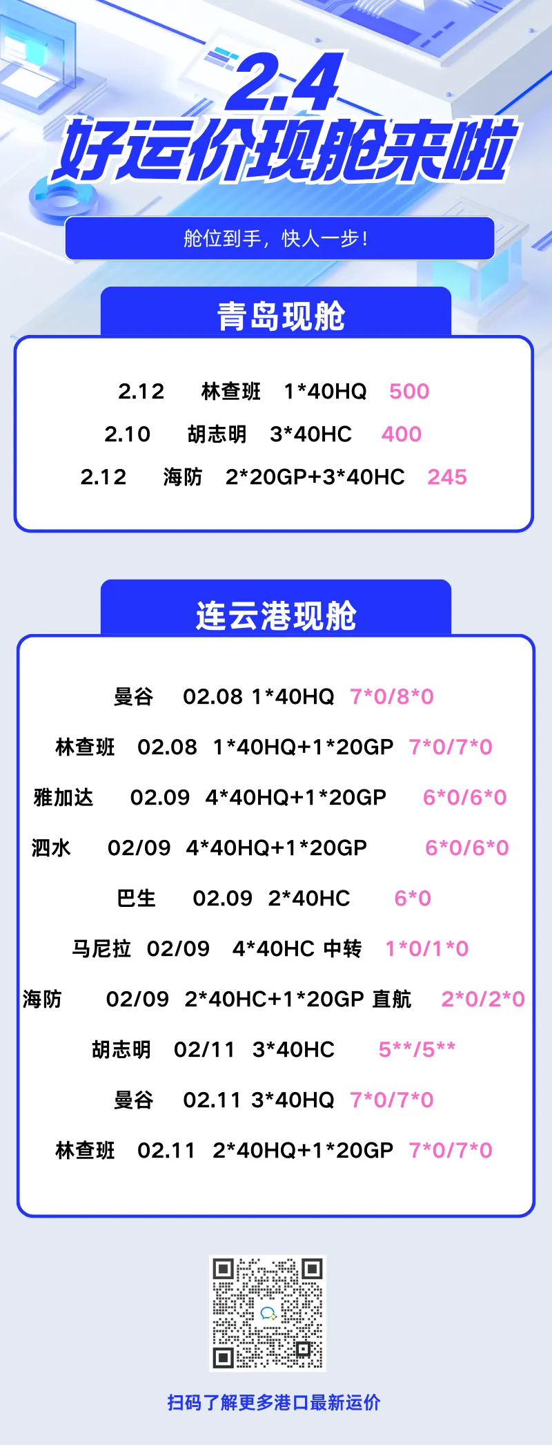 >【青岛好运价】:--今日推荐--