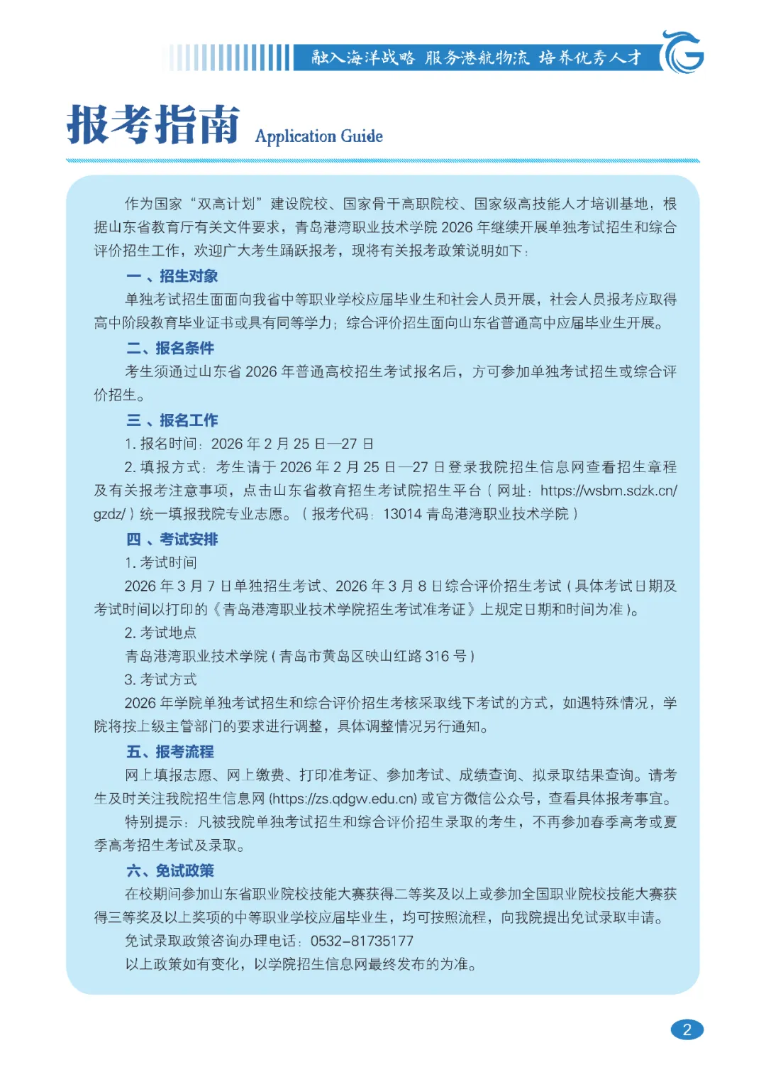>青岛港湾职业技术学院2026年单独招生和综合评价招生简章