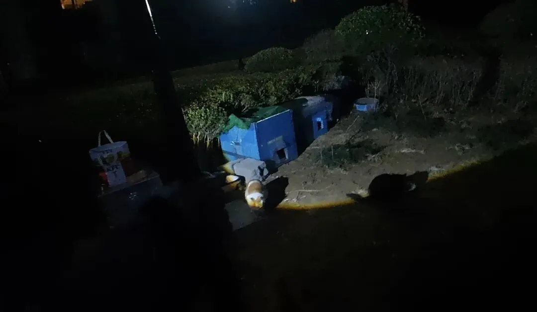 抓完第1只之后,天色微亮,马上又来到了本小区的第二个地点,抓捕一只生病多日的奶猫,这只猫咪从小体弱,但是很警惕,不过也没有耽误很久,没几分钟也就抓住了。