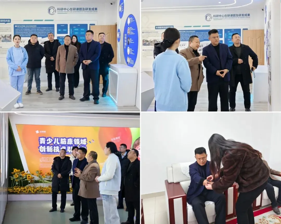 李健敏一行首先了解了心康控股集团成康、医康养、医疗科技、教育等事业部及心康商学院校企合作的基本情况,然后参观了心康控股集团旗下的泰安心康医院、幸福语心理健康中心(中西医结合特色诊疗中心)和开放式综合康复区(运动、书画、娱乐疗法、手工制作),以及集团数智化养老指挥中心、科研中心成果展及在研课题、体(农)疗馆和益语心股份泰安院区,体验了情绪筛查及预警系统设备。