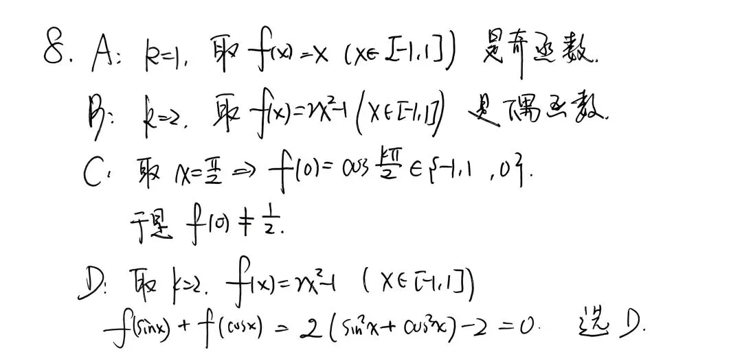 单选8,高一学生即可完成,倍角公式简单运用: