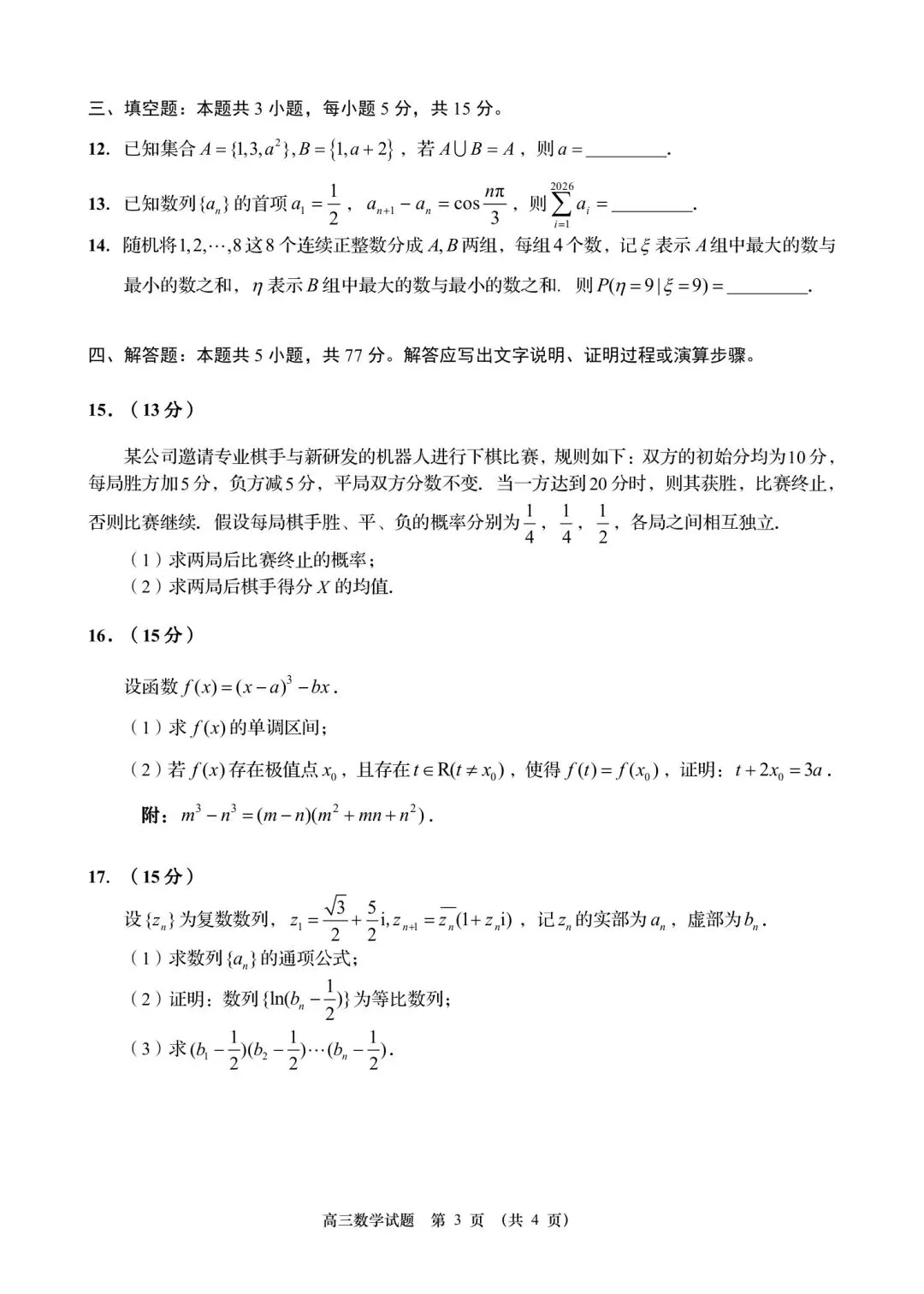 这张卷子从第4题开始就很怪,直接考了数论;11题是复数题,需要对模长与距离的转化比较熟悉。13题也是一道看着比较新颖的题目,大题16,17都透露出诡异的气息(当然并不难,那个所谓的复数数列只需要分别找an,bn递推)。19题是立体几何与圆锥曲线结合,看着也比较诡异。