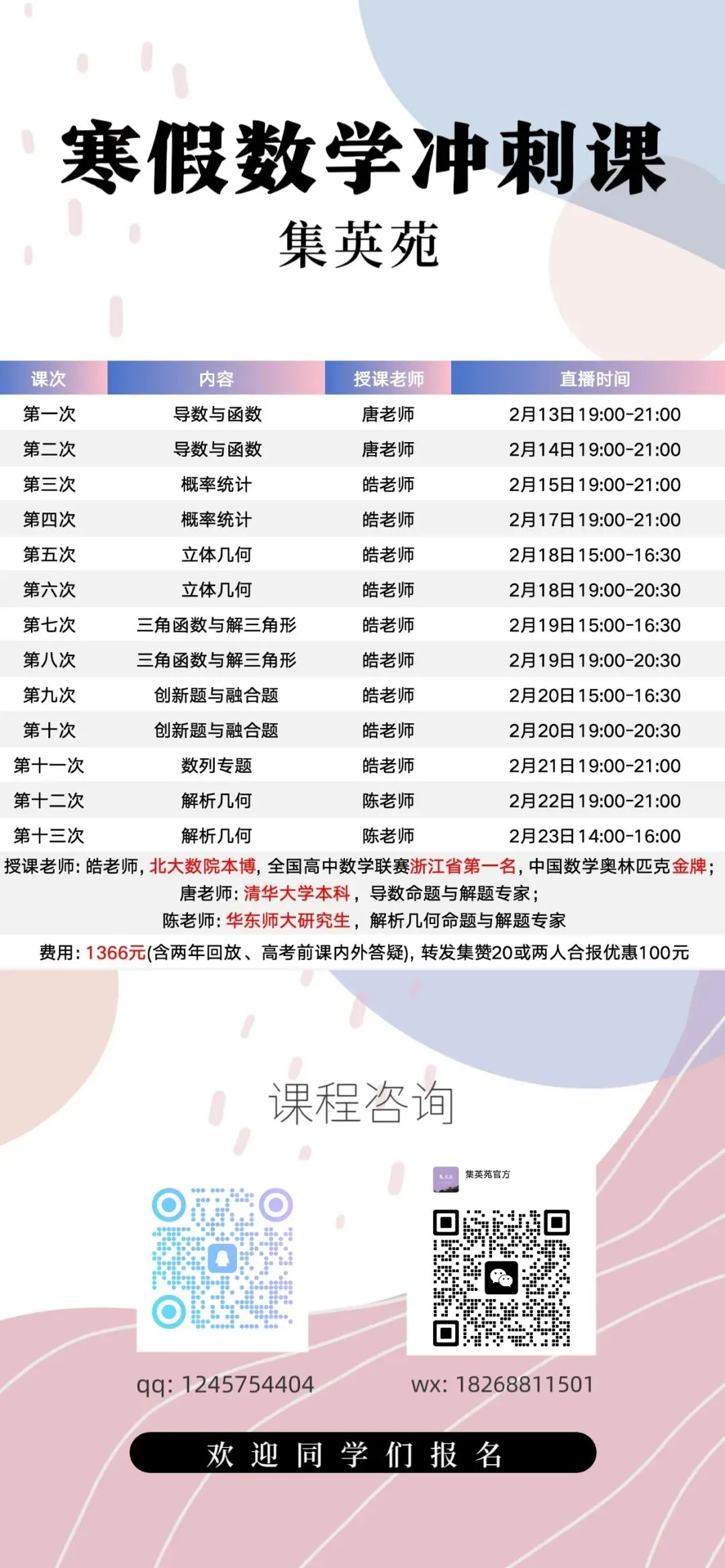 我们的寒假直播课程,为六大板块全面拔高课程,目前在火热报名中