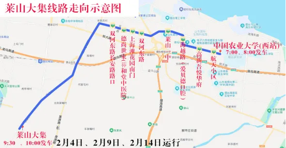 莱山镇大集临时站点9:30、10:00。