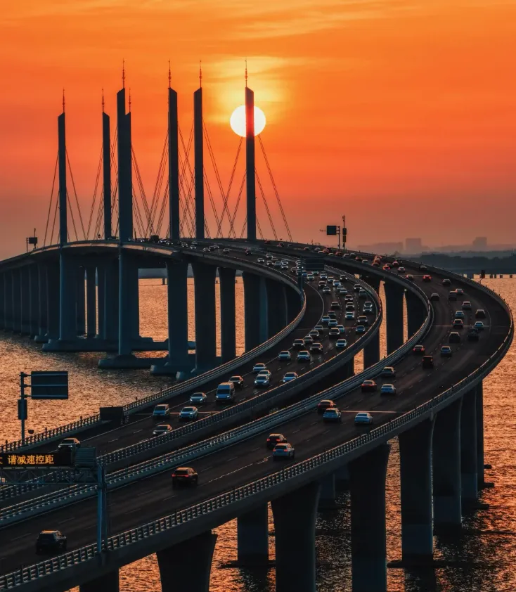 自驾的,胶州湾大桥风大,方向盘握稳,停车别堵着居民口,海边限时巡逻频。