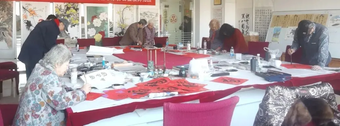 在高新区御花园老年公寓,书画家们与这里爱好书画的老人们欢聚一堂、切磋技艺、共迎新春。老人们兴致高昂、提笔临摹,大家以书会友、以画寄情,现场氛围温馨融洽。