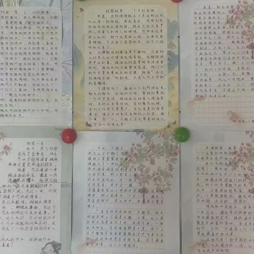 七年级以“景物仿写”为抓手,开展“校园秋景”写作活动。同学们走进校园,细赏枫叶红、竹影翠、桂花甜,用细腻笔触描绘秋日光景,一篇篇佳作将自然之美与童真童趣融为一体,夯实了写作基础。整本书阅读引导学生抓住主要人物,写人物小传,学生读书兴致昂然,小传作品异彩纷呈。