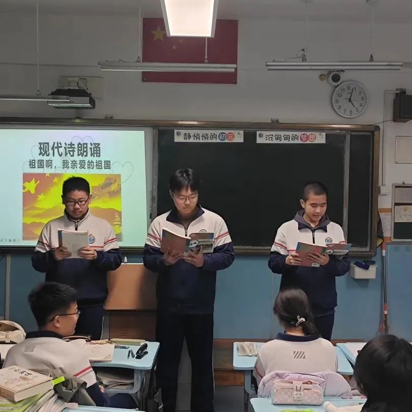 九年级以“诗歌创意写作+朗诵”为载体,点燃青春激情。围绕“青春、故乡、梦想”主题,同学们创作出一首首饱含真情的诗歌。朗诵会上,《祖国啊,我亲爱的祖国》的深情告白、原创诗歌的真挚演绎,让现场掌声不断,既提升了语言表达能力,又释放了学业压力。