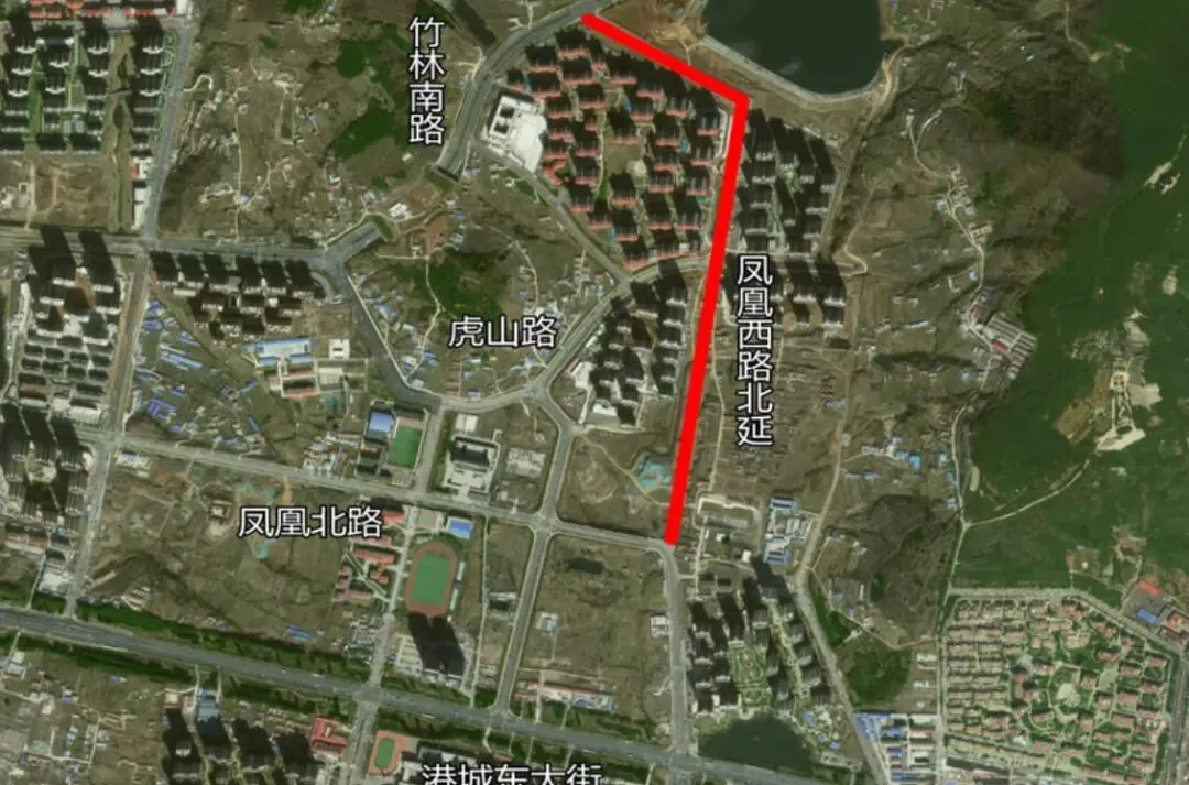 凤凰西路北延工程由莱山区住房和城乡建设局建设,南起莱山区凤凰北路,北至竹林南路。规划总用地面积约6.245公顷,总长度约1475米,规划道路红线宽30米,道路等级为城市次干路。作为碧桂园凤凰山庄C区和山之韵小区之间的通勤要道,凤凰西路从去年9月开始推进管线改迁和综合管廊施工,今年管廊施工全部完成。凤凰西路通车后将与虎山路连通,两条道路贯通后,还将纳入城市公交系统规划,计划新增2条公交线路,覆盖周边多个小区。