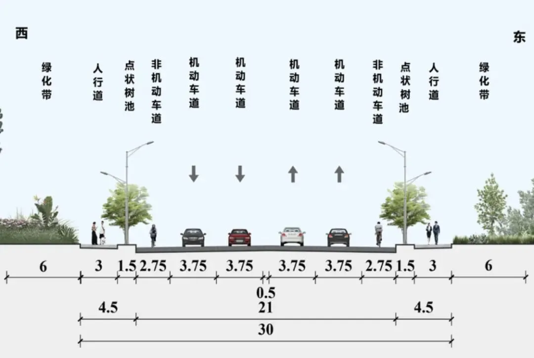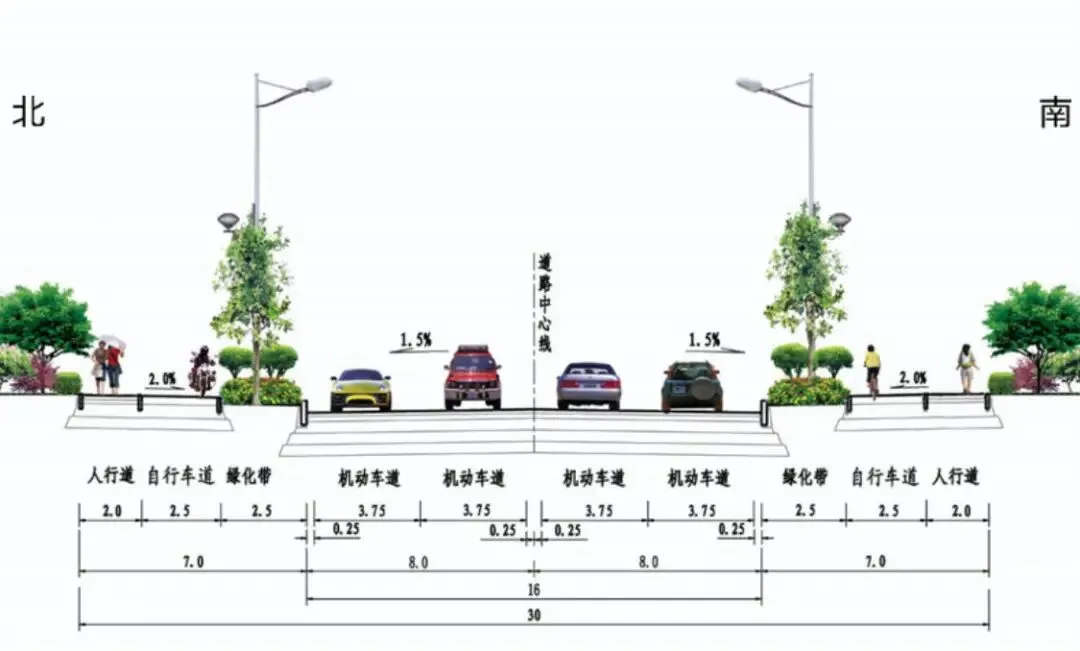 建设规模:规划总用地面积约6.245公顷。总长度约1475米,规划道路红线宽30米,道路等级为城市次干路。