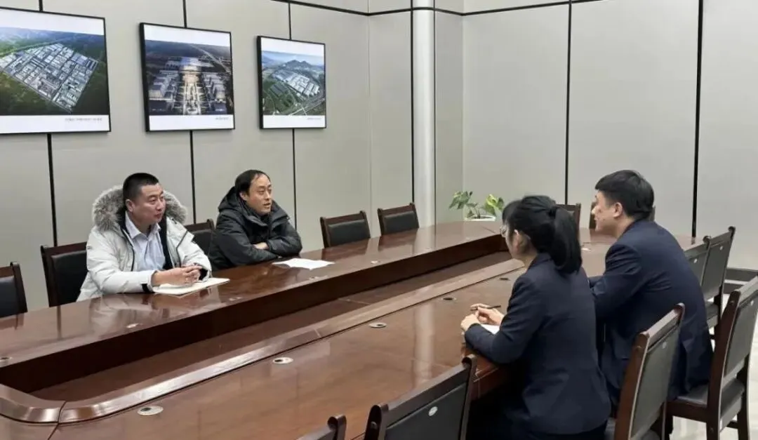△在“项目会客厅”内,交易中心重点项目服务专员与建设方进行现场交流