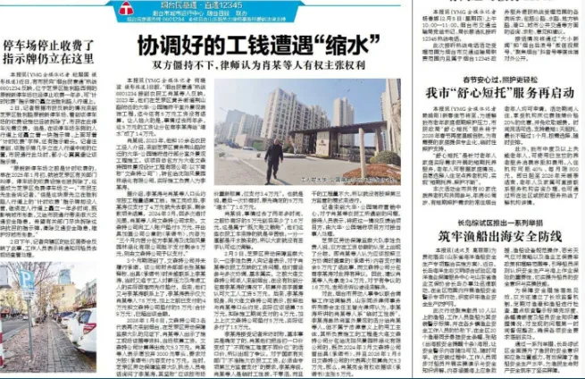 百姓直通2月4日讯 2026年2月4日,《烟台晚报》“要闻”版面刊发报道《协调好的工钱遭遇缩水——双方僵持不下,律师认为肖某等人有权主张权利》,聚焦一起持续两年多的农民工欠薪事件,引发社会广泛关注。