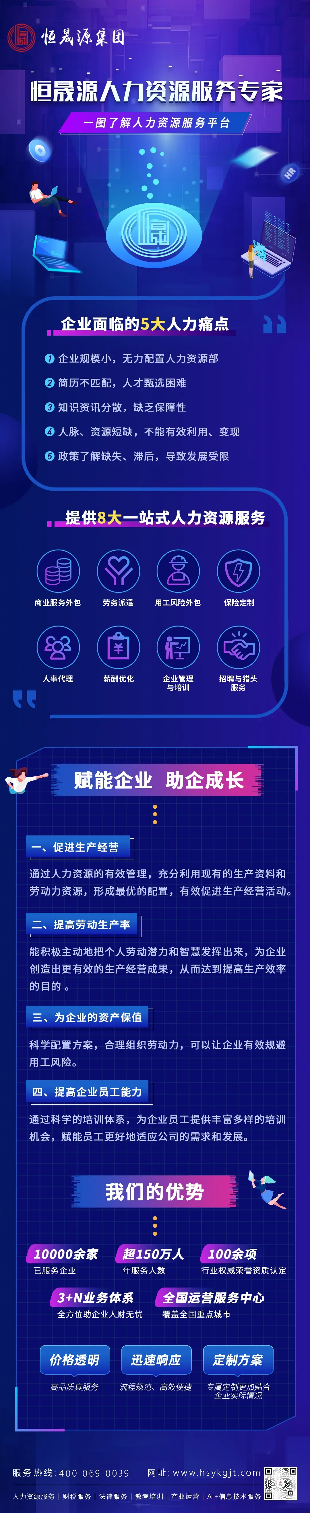 恒晟源多年来深耕人力资源领域,多层次丰富人力资源服务,打造人力资源行业服务平台,优化人力资源配置,助力企业降本增效,实现高质量发展。竭诚为全国客户提供优质服务,恒晟源集团全国客服热线:400 069 0039。