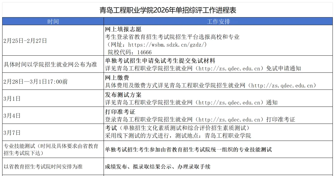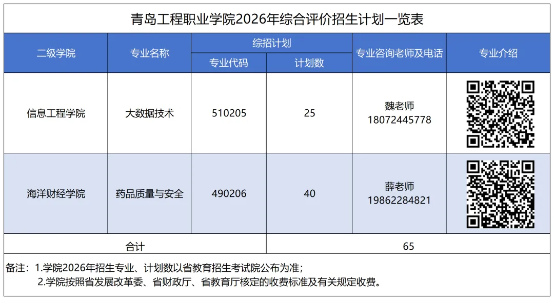 【单招综评】14666青岛工程职业学院2026年单独考试招生和综合评价招生分专业计划来了!