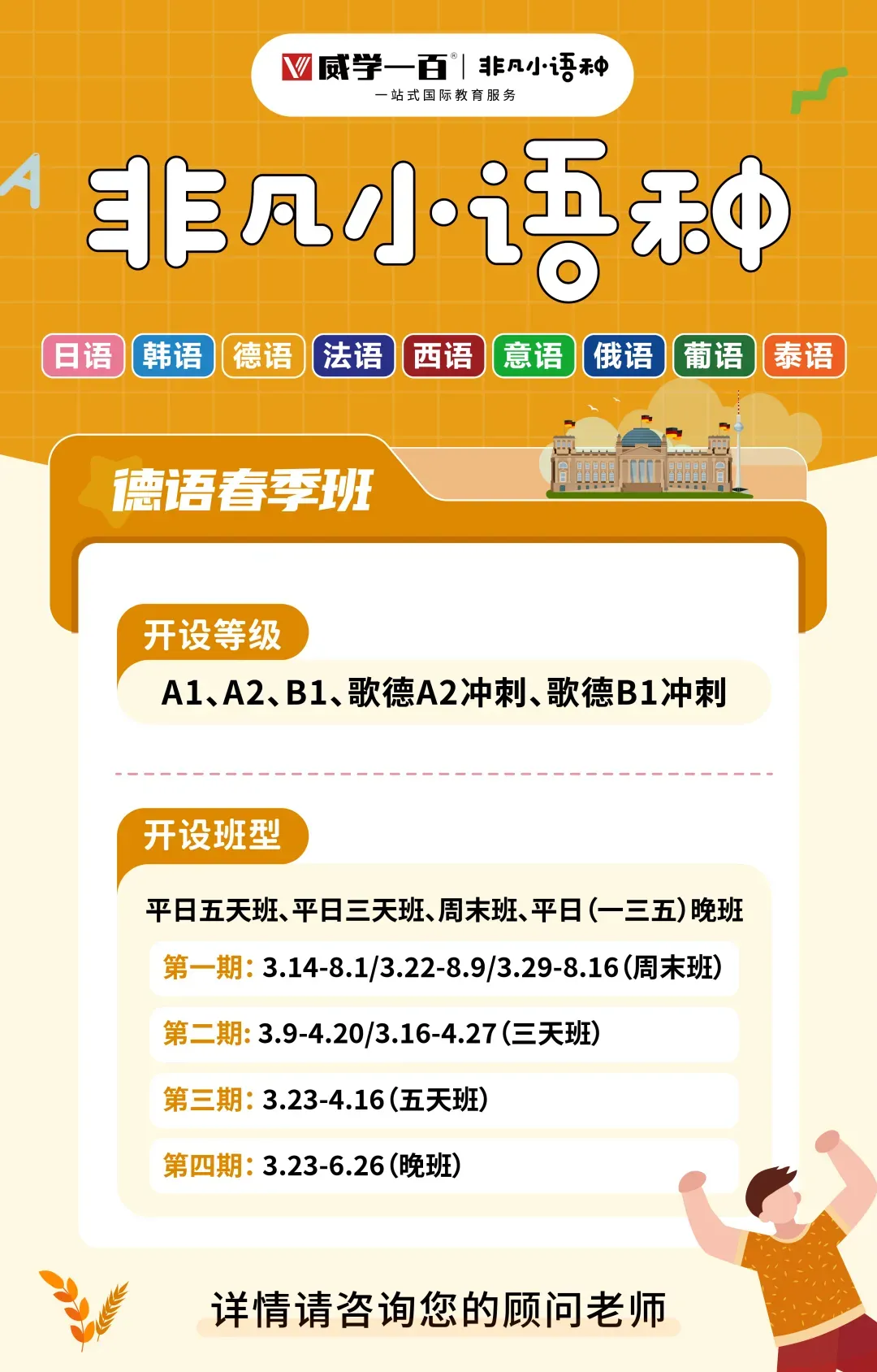 本次考试报名工作将于2025年2月24日10:00开始,请在报名开始后发送邮件至我们的邮箱info.qingdao@goetheslz.com进行报名(提前发送无效)。邮件主题为“XX级别考试报名”,邮件内容为“考生姓名+出生年月+所在地+考生电话+考试级别”。