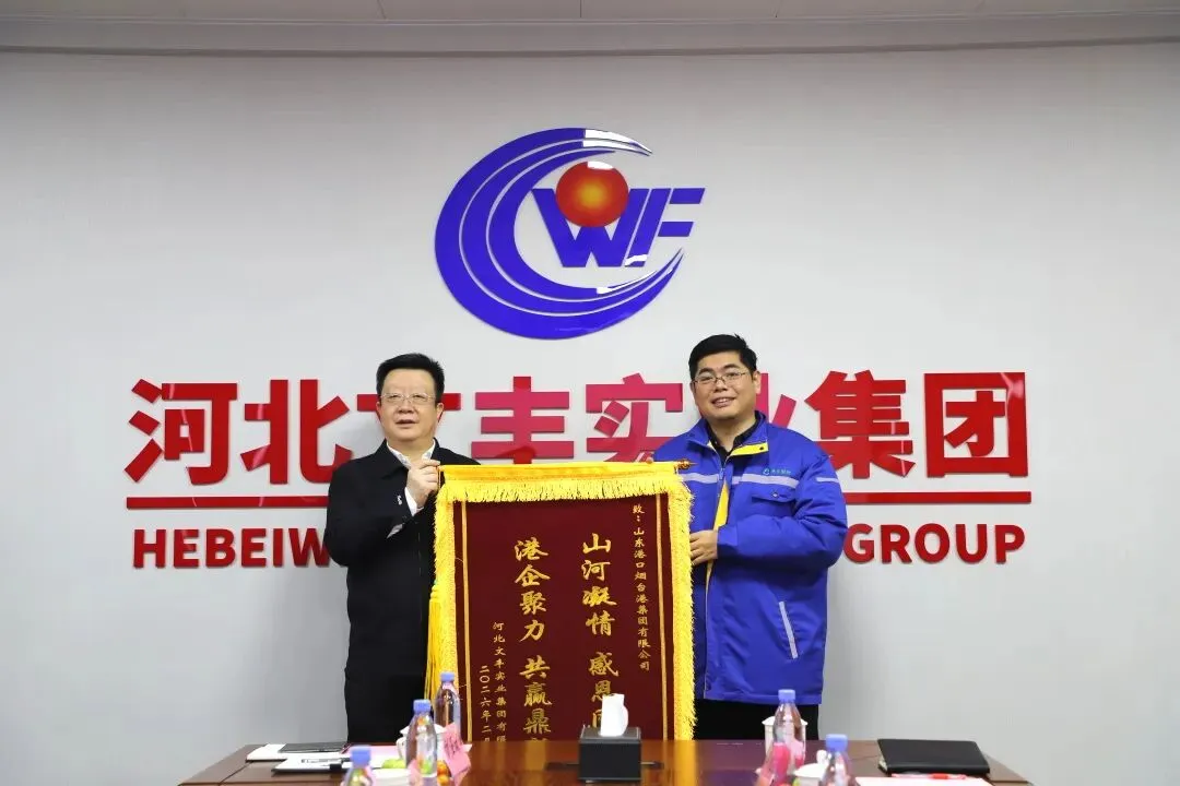 刘少康总裁对刘国田董事长一行的到来表示诚挚欢迎,并系统阐述了文丰集团四大核心业务板块的发展现状与战略布局。他指出,文丰集团经过多年发展,现已形成钢铁、氧化铝、物流码头、海外资源四大业务支柱,构筑了具有竞争优势的全产业链体系。他表示,烟台港在码头精细管理、自动化运营及客户导向服务等方面的实践经验,一直是文丰集团重点学习的方向。未来,文丰集团期待进一步借鉴烟台港在智慧港口建设与供应链综合服务等领域的先进理念,协同提升物流运营效率,携手为客户创造更高价值。