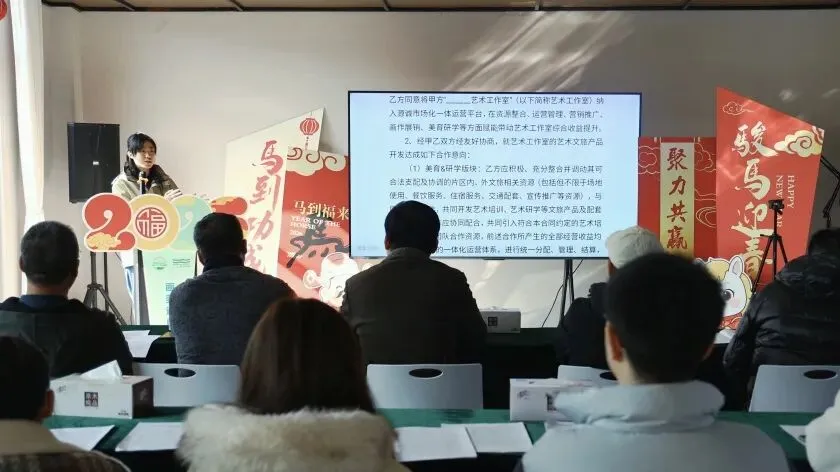 片区一体化运营合作单位——源诚画美达尼旅游发展有限公司代表,就新拟定的《艺术家与片区一体化运营合作协议》进行了全面解读与宣讲。协议旨在通过机制创新,深化“艺术+文旅+产业”融合发展模式,明确各方权责利,构建更为紧密的利益共同体,此举标志着联盟与市场主体的合作迈入了规范化、深层次的新阶段,为艺术成果转化与片区整体增值提供了坚实的制度保障。